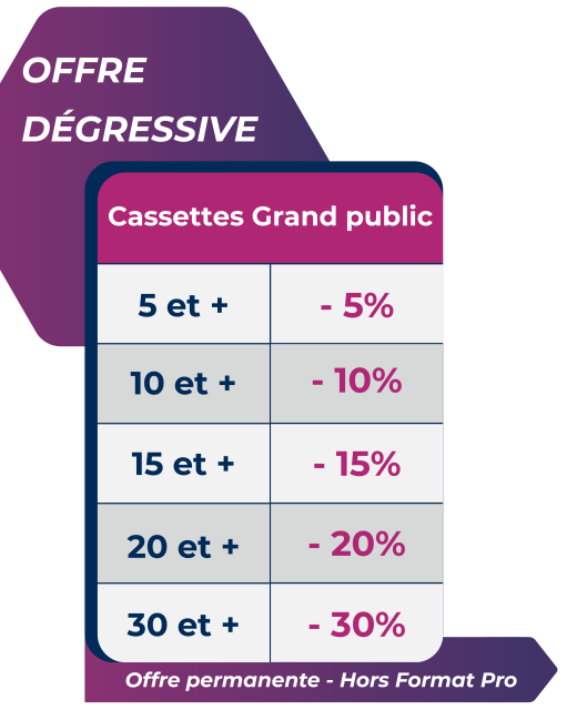 - 1ère cassette 29.99 € / Les suivantes 24.99 €